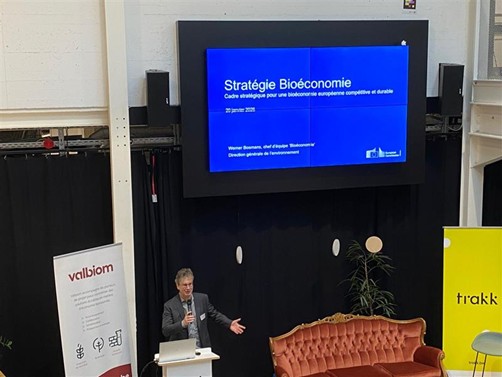 Nos conseillers Carine Petit (Cluster 6) et Antoine Folcher (NEB) du NCP Wallonie ont pu participer à la conférence organisée par Valbiom, sur la thématique de la bioéconomie le 20 janvier dernier à Namur. Cette conférence s’est tenue dans un contexte de déploiement de la nouvelle stratégie européenne en bioéconomie. Cette stratégie vise à renforcer la compétitivité industrielle, la durabilité environnementale et la résilience économique des territoires, notamment en Wallonie. Plusieurs intervenants issus de la Commission européenne, du secteur privé et de la recherche ont partagé leurs analyses, expériences et perspectives pour la Wallonie.