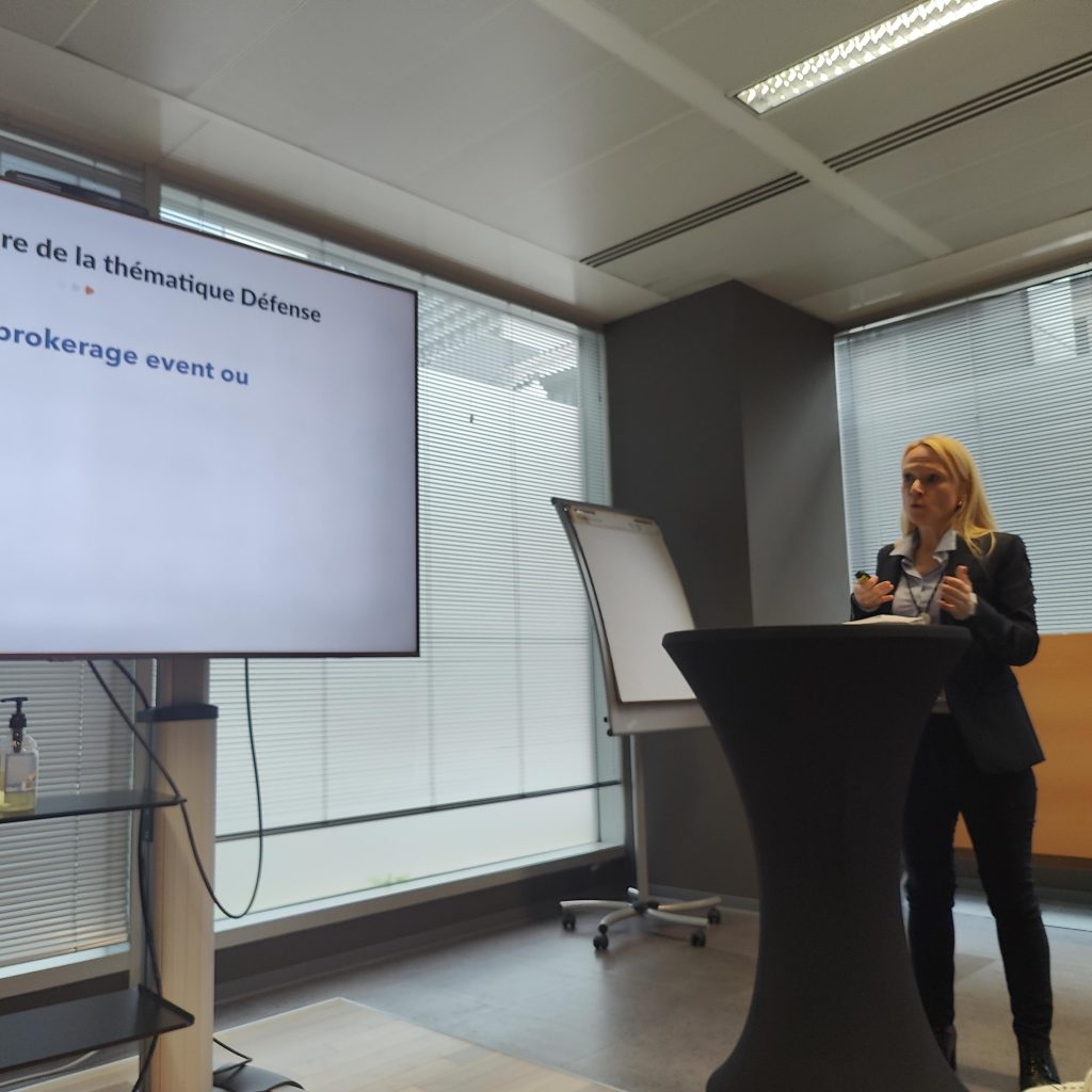 Francisco Santana Ferra, coordinateur et manager du NCP Wallonnie et la conseillère Mélina Di Matteo, ont présenté les possibilités offertes aux Wallons dans le secteur de la défense et comment ils peuvent être accompagnés par nos services dans leurs démarches.